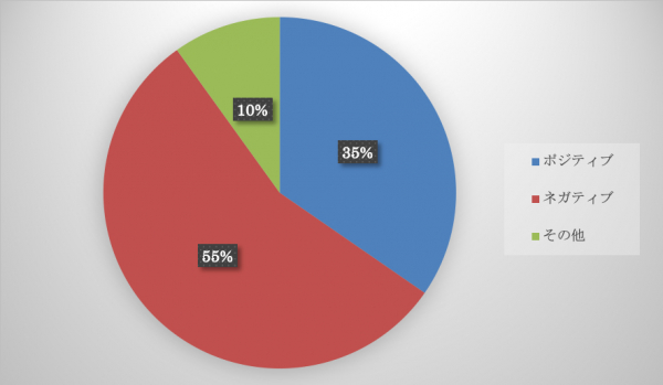 調査結果は「ネガティブ」が55%と半数を超え「ポジティブ」は35%「その他」は10%となりました。
