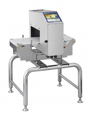 金属検出機は主に食品工場で採用されている検査機で、ベルトコンベアによって被検査物を搬送しながら、被検査物に含まれているおそれがある金属異物を検出し、食品などの商品の安全性を検査する装置です。