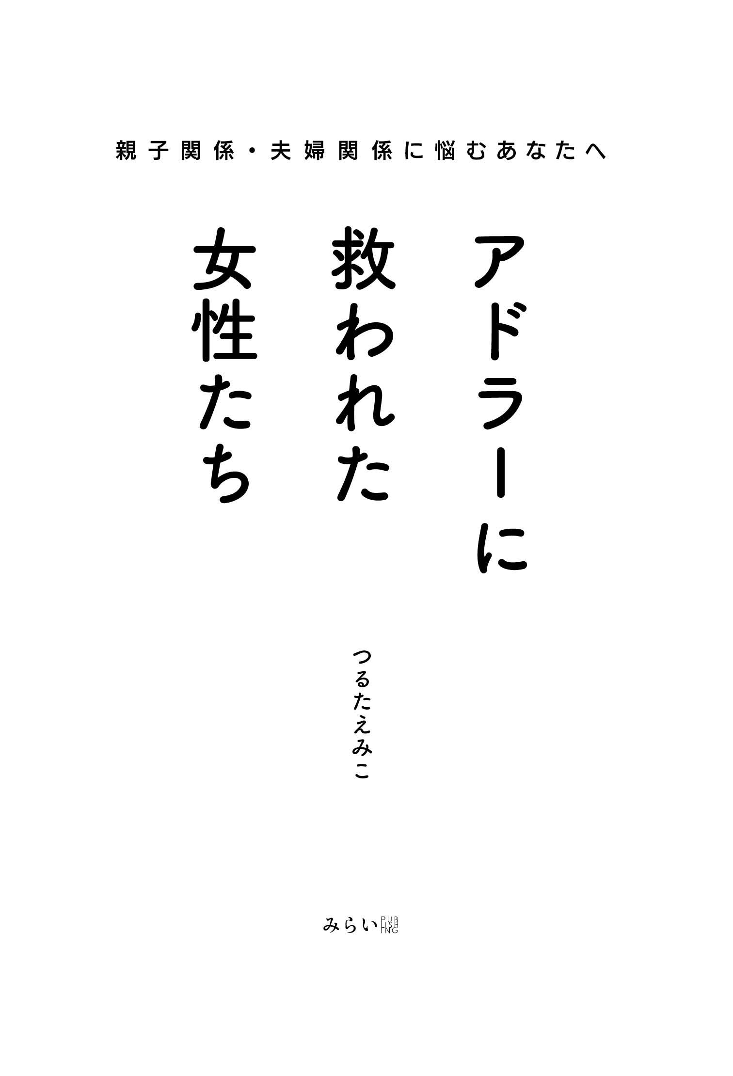 みらいパブリッシング(所在地:東京都杉並区高円寺、代表取締役:松崎義行)は『アドラーに救われた女性たち 親子関係、夫婦関係に悩むあなたに』 を2020年4月17日に刊行します。 著者:つるたえみこ 四六判 184ページ 本体 1400円+税 ISBN:978-4-434-27356-8 書籍詳細:https://www.amazon.co.jp/dp/4434273566