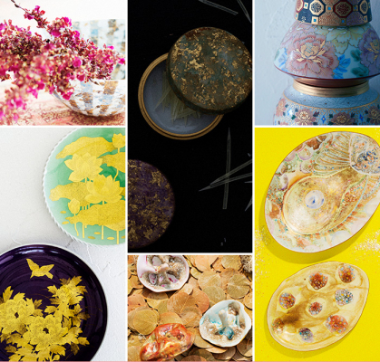 春の陽を思わせる、柔らかく繊細な煌き、三者三様の美しさが響きあう、錦山窯の夢の世界をお楽しみください。