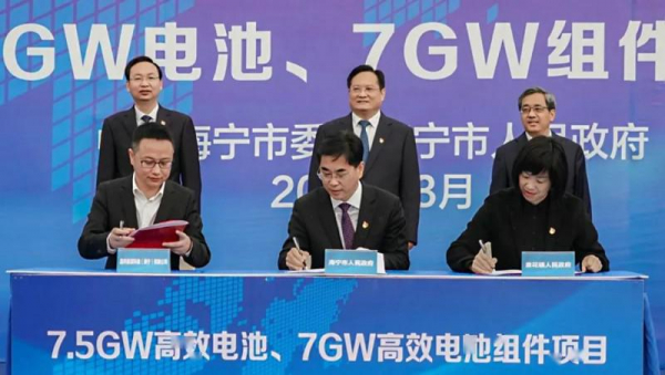 2020年3月26日、中国浙江省海寧市で重要工業プロジェクト集中竣工(生産開始)及びジンコシーラーの「二倍増」一期の2.5 GW電池、2 GWモジュールプロジェクトの竣工(投産)及び7.5 GW電池、7 GWモジュールの追加プロジェクトの契約式が行われた。