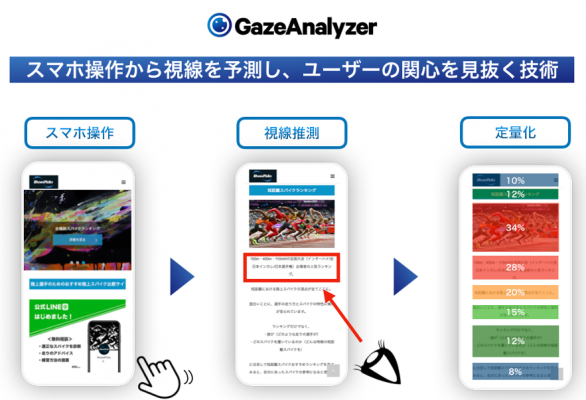 株式会社ヒトクセ(本社:東京都新宿区、代表取締役社長:宮崎航、以下「ヒトクセ」)は2020年4月7日、スマホ上の指のタップ動作やスクロールの動きからAIを用いて顧客の視線を予測することで、顧客の関心位置を解析しサイト改善や広告配信のターゲティングに活用する視線トラッキング分析システム「GazeAnalyzer(ゲイズ・アナライザー)」をリリースいたします。