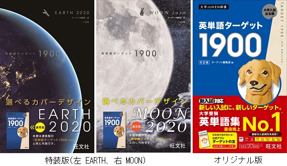 教育出版の株式会社旺文社(本社:東京都新宿区、代表取締役社長 生駒大壱)は、書店売上No.1(※1)の大学受験用英単語集『英単語ターゲット1900[6訂版]』の2種類の特別カバーデザイン「EARTH」と「MOON」を数量限定で刊行します。