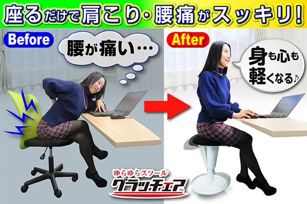 【グラッチェア】を使えば、身も心も固まらないから、常にリラックスした状態でお仕事に臨める!