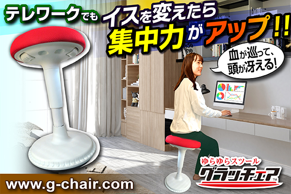 デスクワーク中に「ながら運動」ができる【ゆらゆらスツール グラッチェア】に、