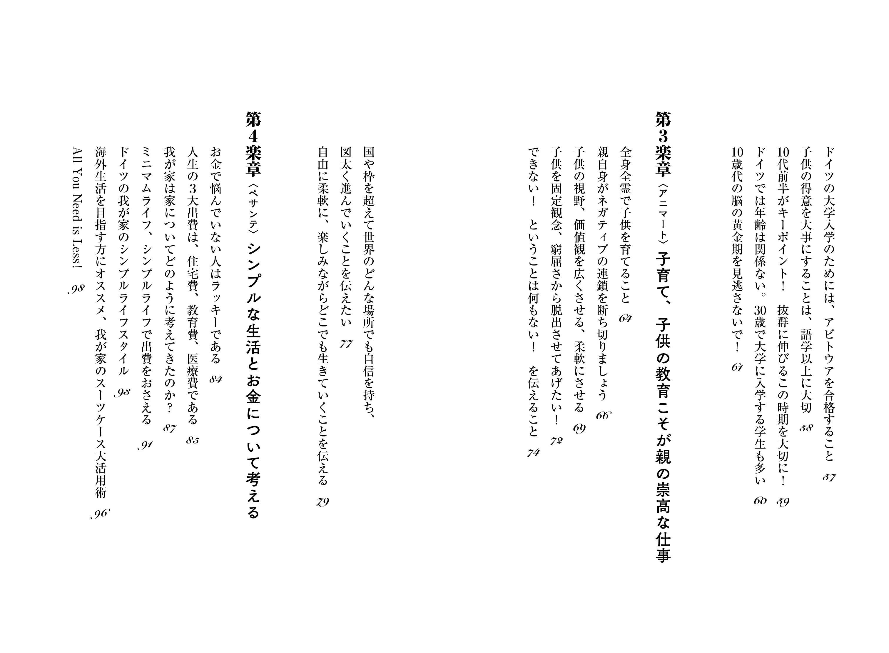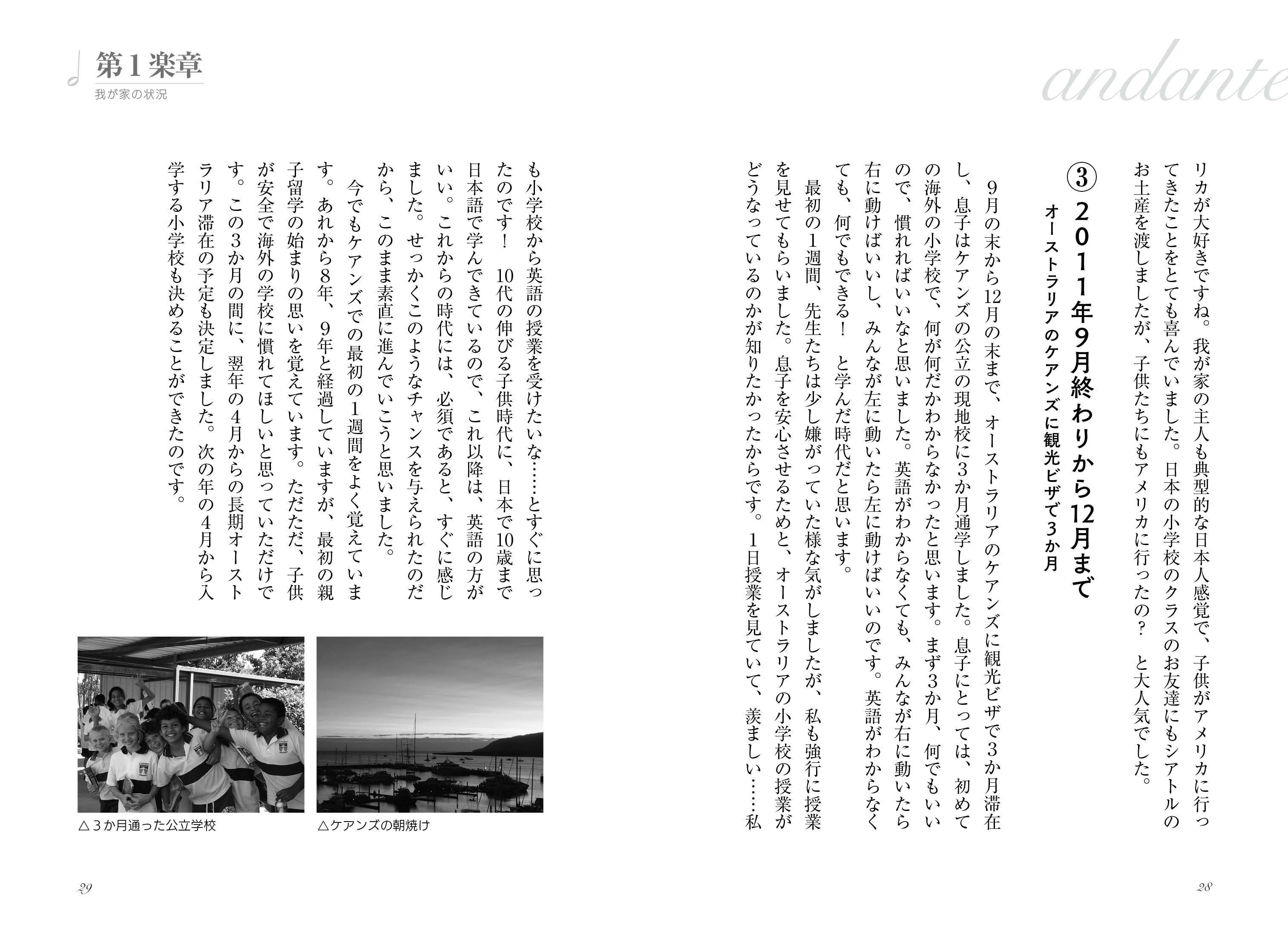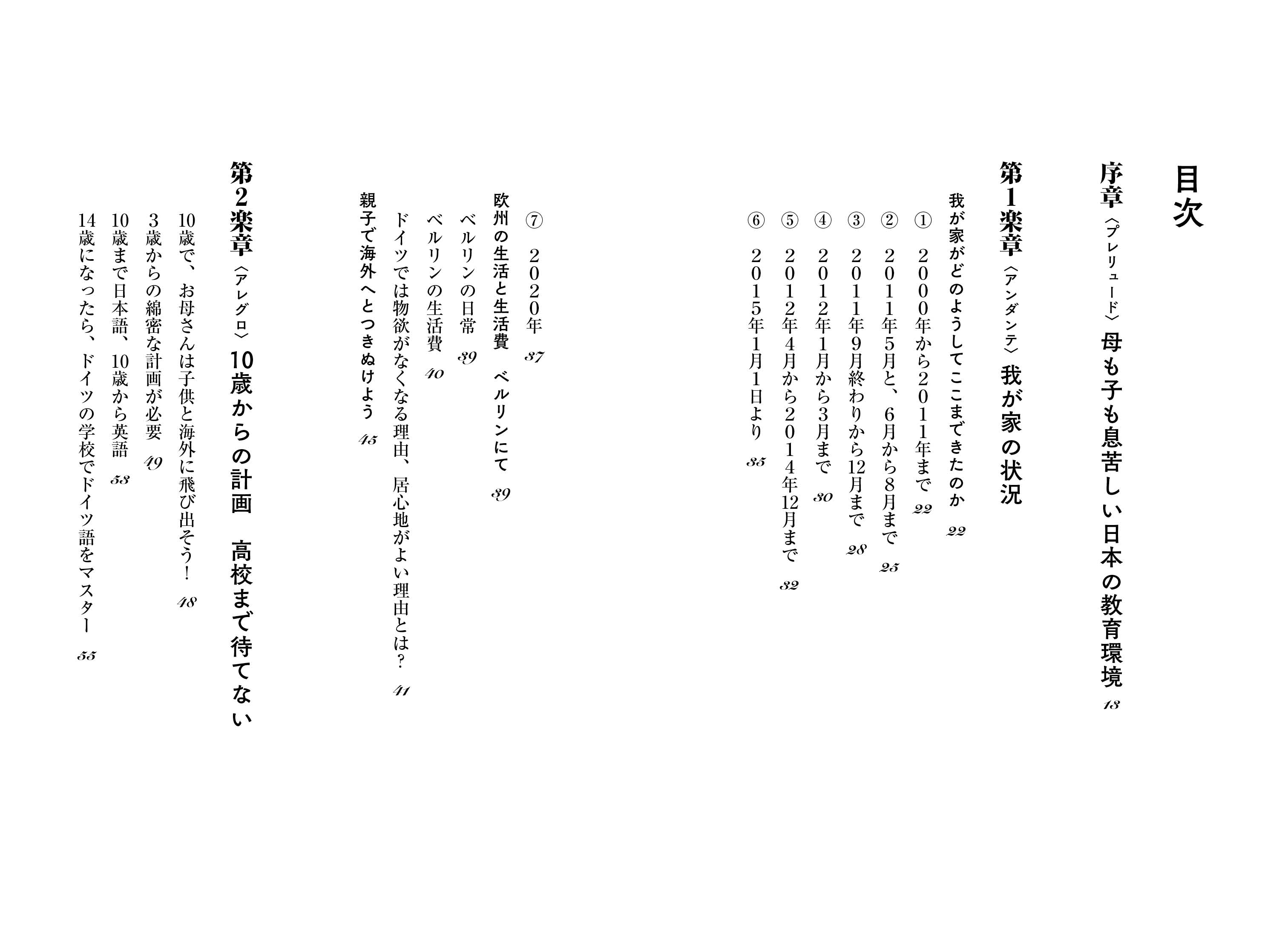 その後オーストラリアの小学校に転入する息子に、自身はガーディアン・ビザ(未成年の留学生の保護者用のビザ)で寄り添います。さらに、学費無料のドイツへ! ギムナジウムに息子が留学する際には、ネット中心の教育相談の仕事を確立させて、就労ビザで滞在中です。10年間の海外親子生活のエピソード、そこから学んだ自由な生き方と生きる力とは目からウロコの内容が満載。こんな生き方、夢じゃないんです!