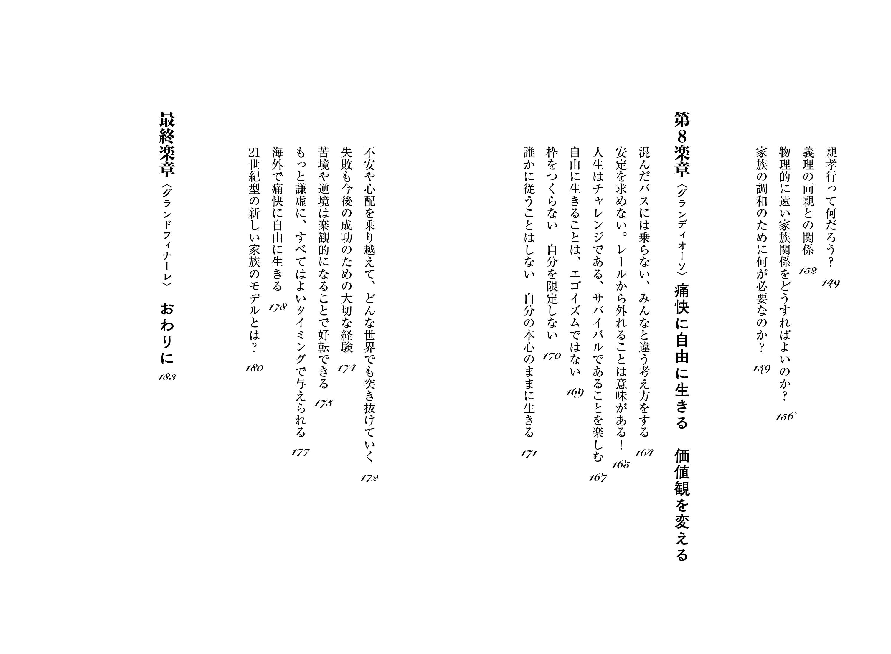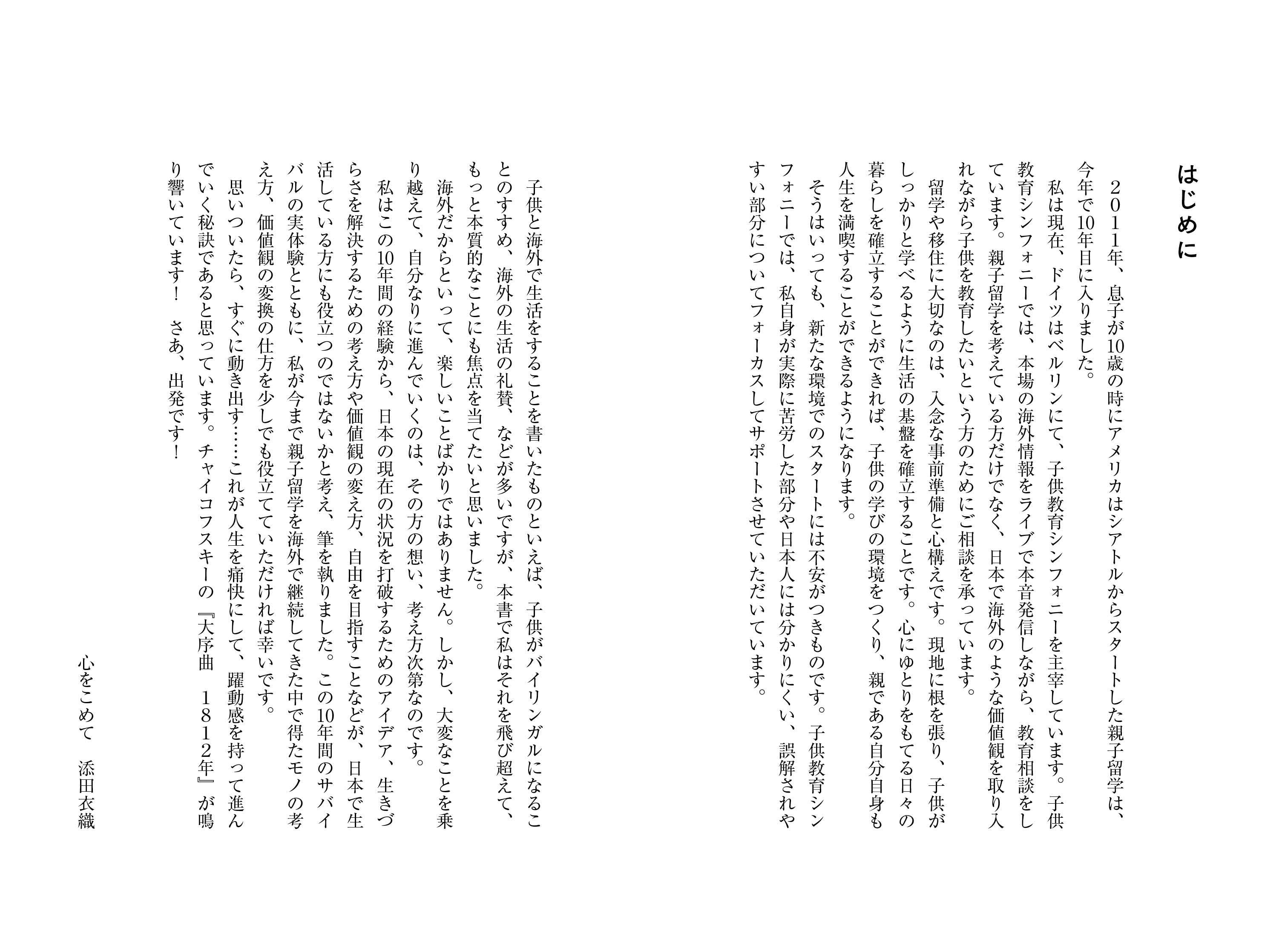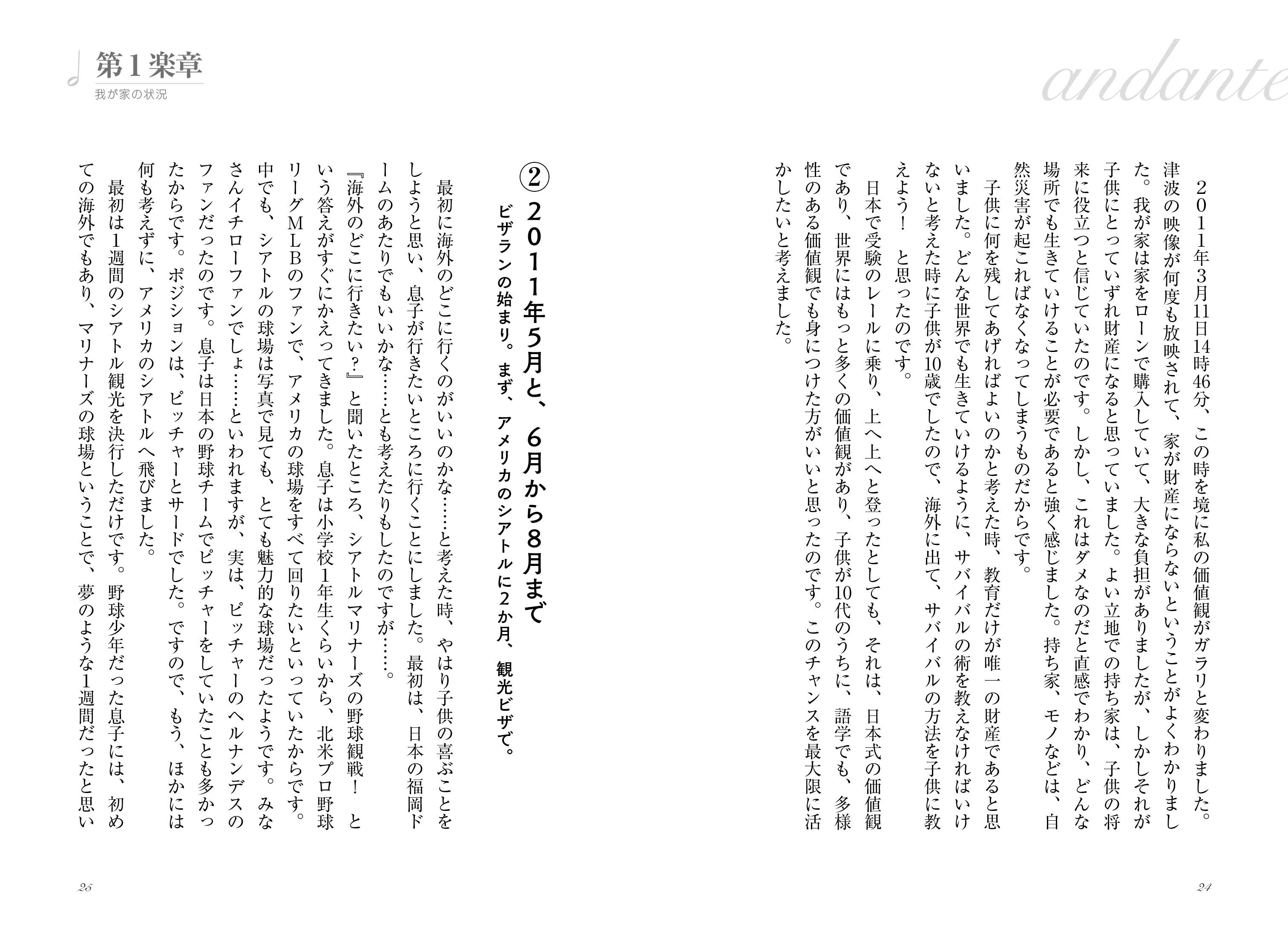 思いついたら、すぐに動き出す。「これが人生を痛快にして、躍動感を持って進んでいく秘訣であると思っています」と著者は言います。10年間の親子留学のサバイバル体験とともに、培ってきたシンプルなものの考え方、価値観の変換のしかたは、日本での子育てにもきっと役立つことでしょう。