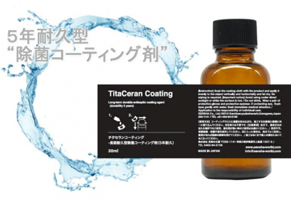 本製品「チタセランコーティング」は一度の施工で5年もの耐久性をもつ除菌・抗菌・消臭剤です。