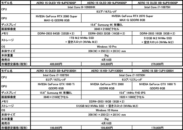 https://www.gigabyte.com/jp/Laptop/AERO-15-OLED--Intel-10th-Gen