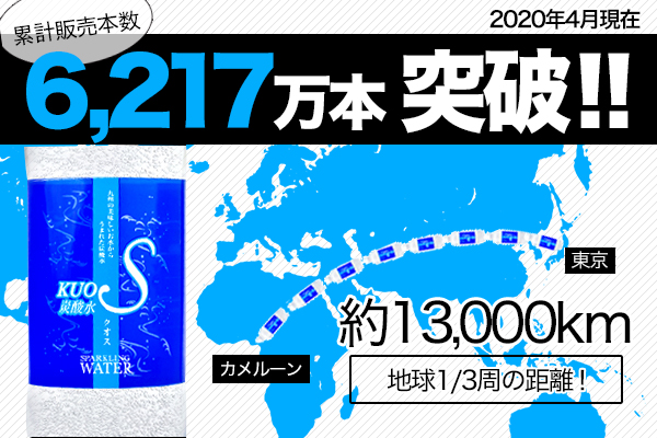 株式会社OTOGINO(オトギノ:代表取締役社長 鬼武公洋 本社 大分県日田市北友田 2 丁目 2123 番地 1)がE-コマースにて販売している主力商品、うまさを感じる強炭酸水『KUOS-クオス-』の累計販売本数が6,217万本を突破しました。(2020年3月31日)これは、縦に並べると距離で地球を1/3周します。