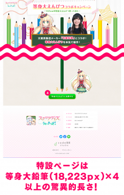 等身大鉛筆分の高さのある(74,244px以上)キャンペーン特設ページ