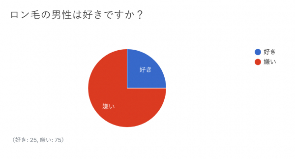 「ロン毛の男性は好きですか?」の質問では、好きが25%、嫌いが75%という結果となりました。