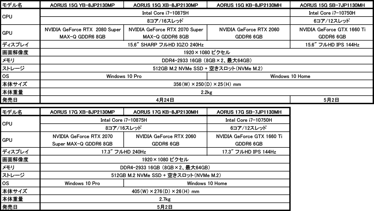 https://www.gigabyte.com/jp/Laptop/AORUS-15G--Intel-10th-Gen