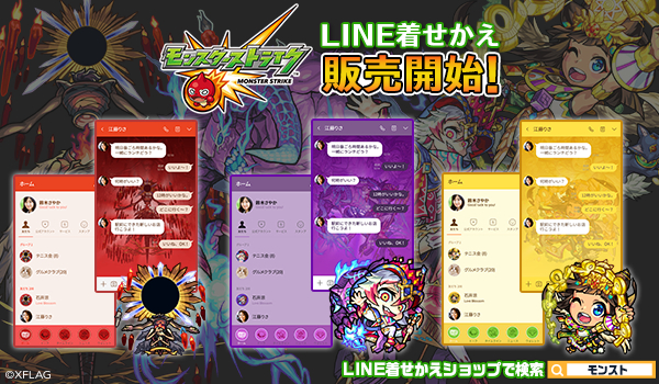 株式会社インクルーズ(東京都渋谷区、代表取締役社長 山﨑 健司)は、LINE株式会社(東京都新宿区、代表取締役社長 出澤 剛)が運営するコミュニケーションアプリ「LINE」内の着せかえショップにて、株式会社ミクシィ(東京都渋谷区、代表取締役社長執行役員:木村 弘毅)のXFLAGが提供するスマートフォンアプリ「モンスターストライク」のLINE着せかえ3点を2020年4月16日(木)に一斉配信致しました。