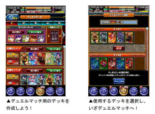 デュエルマッチでは、バトルで獲得できる「デュエルP」に応じてランキングが決まり、リーグ終了時に報酬が獲得できます。