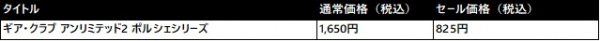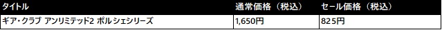 ギア・クラブ アンリミテッド2 ポルシェシリーズ通常価格(税込)1,650円/セール価格(税込)825円