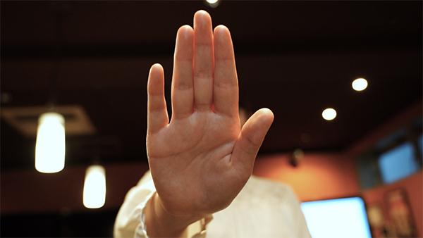 「非接触AIさくらさん」は、画面に向かって手をかざし操作することで、その名の通り画面に触れることなく、今まで通り音声による対応が可能です。