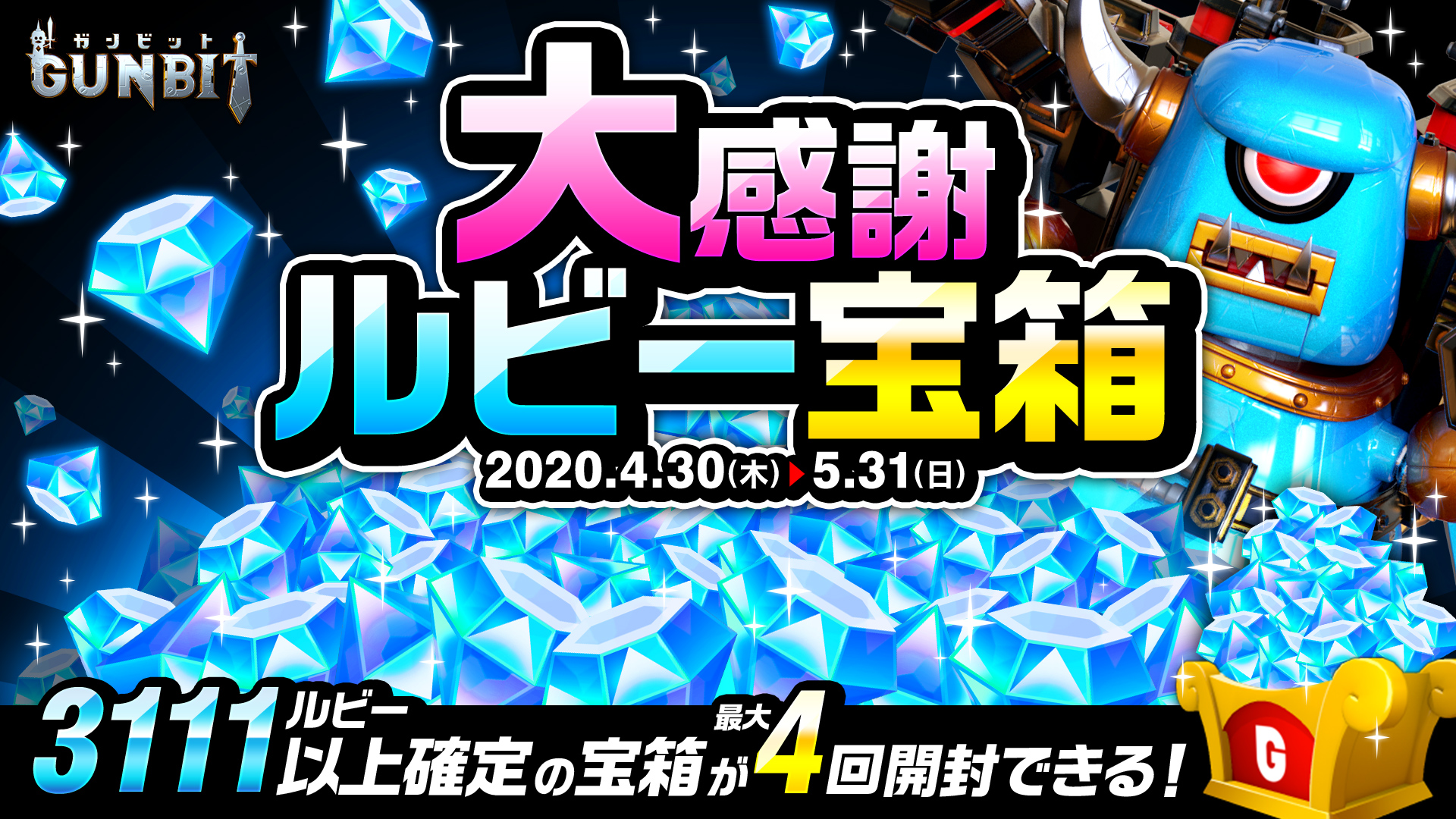 必ず3111ルビー以上が当たる「大感謝 ルビー宝箱」が登場します。