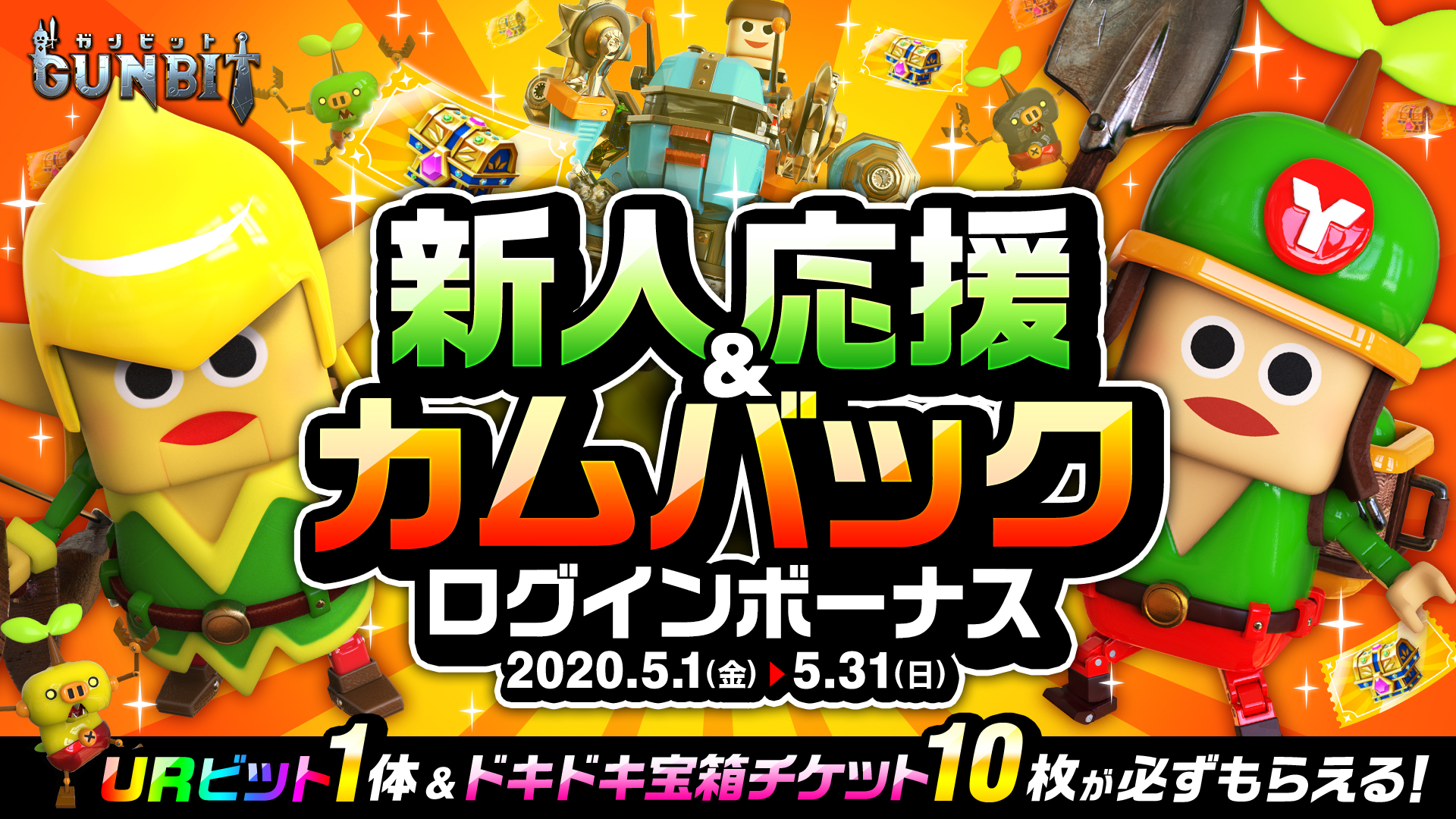 期間中、「10日」ログインするとドキドキ宝箱チケット最大10枚&URビット1体などがプレゼントされます。