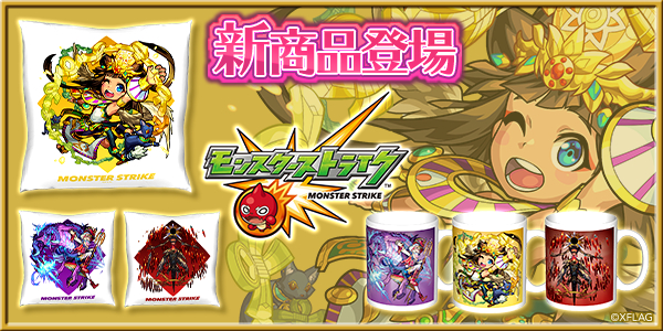 世界累計利用者数が5,300万人突破の大人気スマートフォンアプリ「モンスターストライク」、大好評の「カワセル」限定グッズの第7弾商品が販売開始します。今回は『闇を照らす絆の太陽神 ラー』、『狂おしき皇帝 カエサル』、『安息を与えしもの レクイエム』がそれぞれグッズ化!マグカップ、クッションが販売開始です。大型のクッションにはキャラクターを大きくデザイン、またマグカップは普段使いにもばっちりです。今後も「モンスターストライク」より、毎月キャラクターが続々と登場予定となっておりますので、お楽しみ頂けますと幸いです!