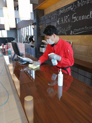 「時節柄、感染症対策のためテーブルや椅子、カウンターなどの除菌作業をおこなってきました。