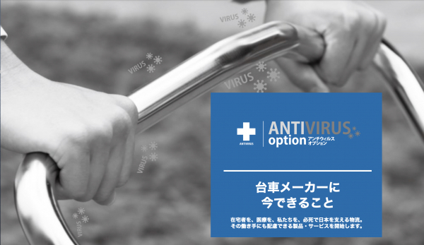 緊急事態宣言が発令されている中、食料・日用品の物流は止めるわけには行かず、日々運送業者の方は休む暇なく従事しています。そういった方々に、私たち物流機器メーカーが何かお手伝いができないかと思い「ANTIVIRUS option」を発売することになりました。