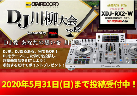 オタイオーディオ株式会社が運営するOTAIRECORDは#MDL(MUSIC DON'T LOCKDOWN)のサポートを受け、DJ川柳大会を2020年5月8日(金)より開催いたします。