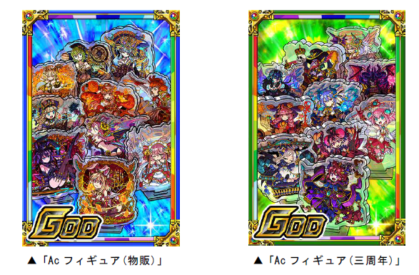ダンジョンのボスモンスターを倒すと、まれに新たな限定子分カード「Acフィギュア(物販)」「Acフィギュア(三周年)」が手に入ります。