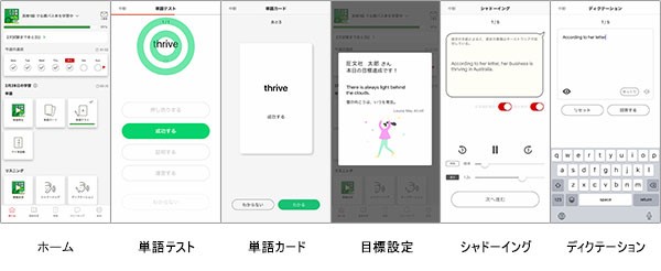単語リスニング機能に、書籍掲載英単語の日本語訳音声と英語例文音声のコンテンツが追加されます。再生パターンや再生設定を詳細にカスタマイズすることが可能で、自分に合ったリスニング学習を実現できます。その他、「音声を聴いて答える」単語テストやフラッシュカード、自分の学習状況を反映した「マイ単語帳」など、単語暗記から記憶定着までを豊富な機能でサポートします。