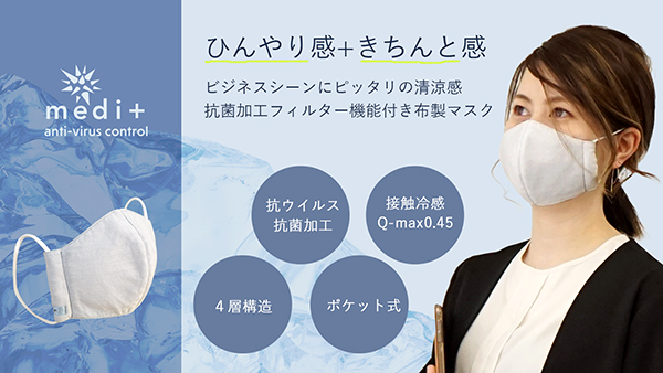 『ビジネスシーンに!抗ウイルス加工のひんやり涼感4層構造ポケット式マスク』のクラウドファンディングプロジェクトを掲載開始しました。