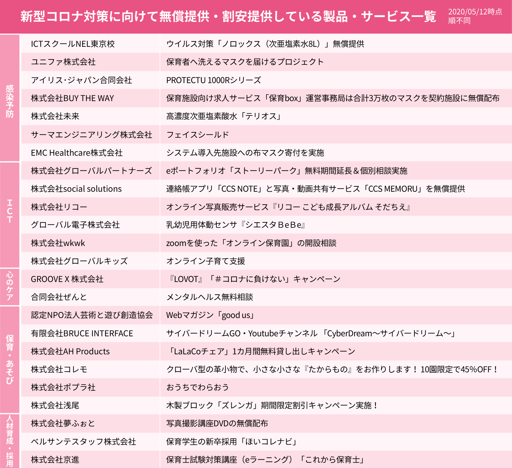 【新型コロナ対策に向けて、無償提供・割安提供などをしている商品・サービスまとめ】