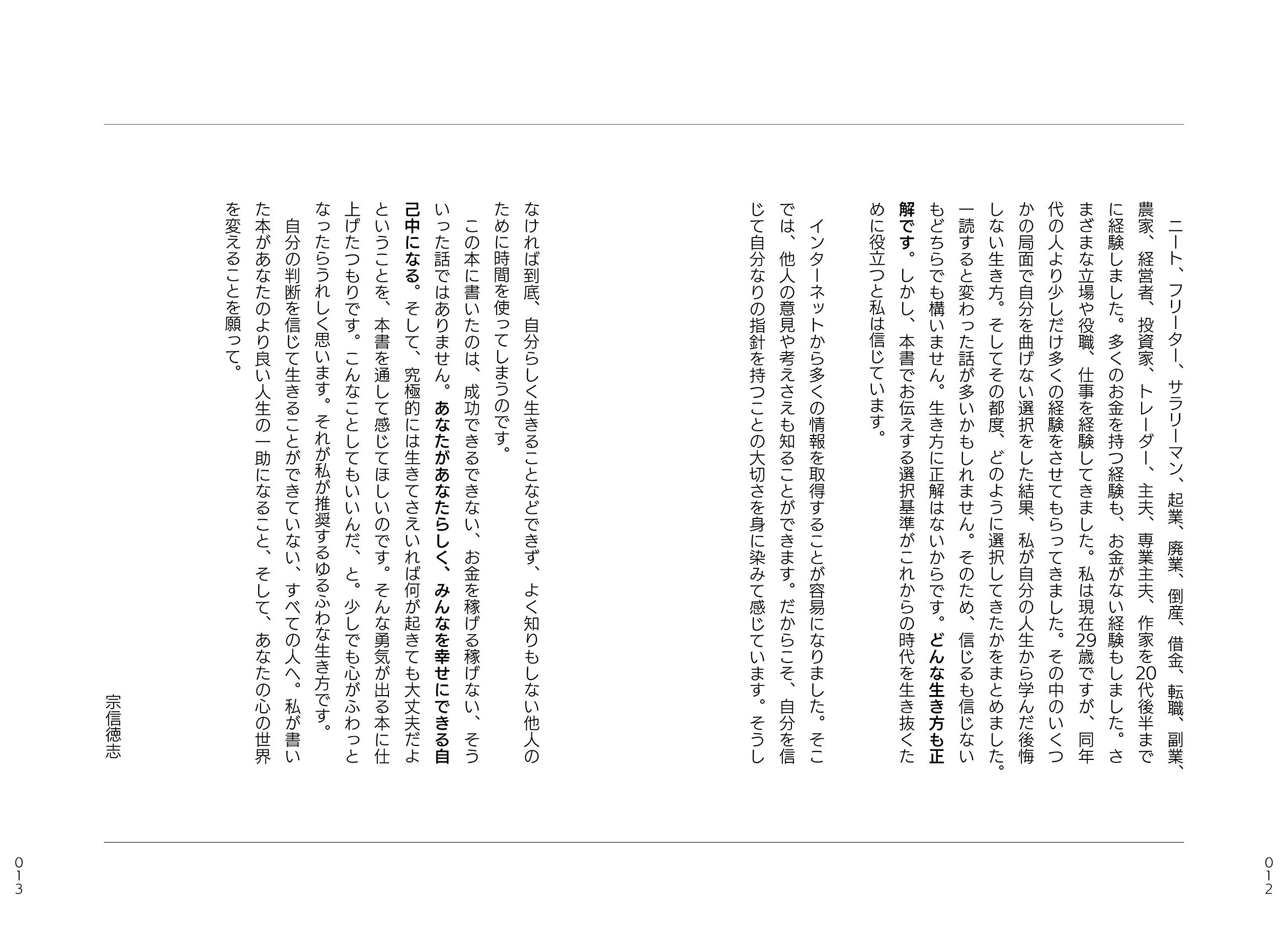 「この本に書いたのは、成功できるできない、お金を稼げる稼げない、そういった話ではありません。