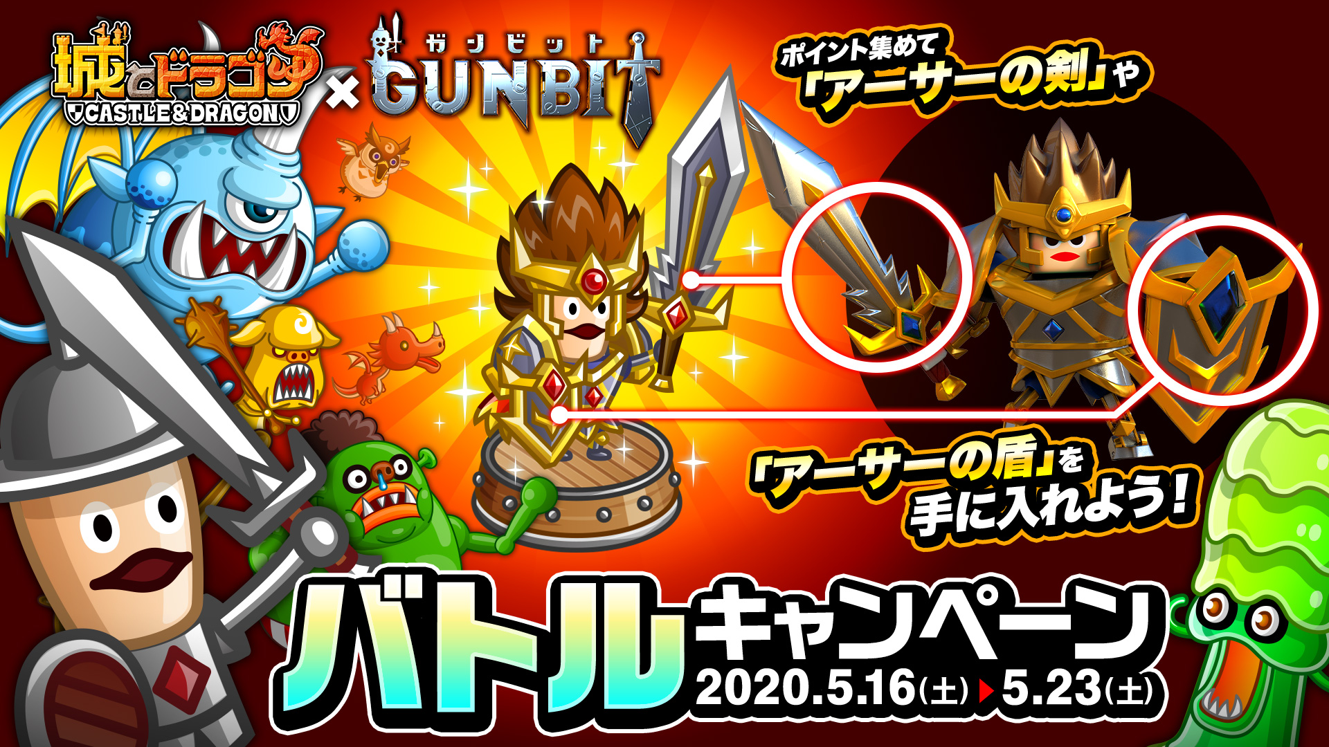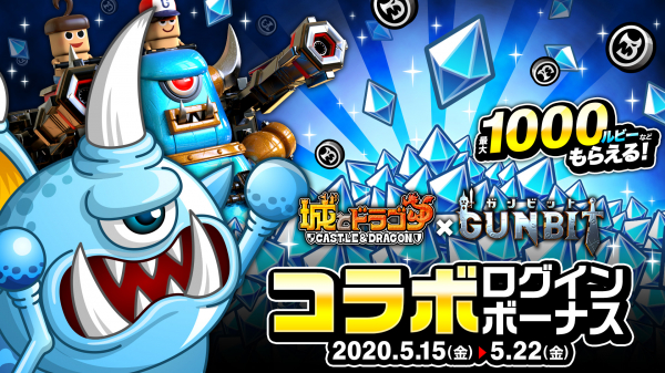 株式会社アソビズム(本社:東京都千代田区、代表取締役:大手智之)は、App Store・Google Playにて好評配信中の『城とドラゴン』で、同社が配信する『ガンビット(GUNBIT)』とのコラボイベント開催を記念した「ガンビットコラボログインボーナス」を5月15日(金)より開催いたします。