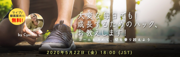 世界中の講師と生徒をつなぐオンライン習い事サイト「カフェトーク(http://cafetalk.com/)」を運営する株式会社スモールブリッジ(本社:東京都渋谷区、代表取締役:橋爪小太郎)は、2020年5月15日、アメリカ出身台湾在住のライフコーチCynthia C.講師による無料のライブセミナー「大変な毎日でも!成長するためのハック、お教えします!」を2020年5月22日(金)に開催することを発表します。