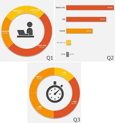Q3. オンラインで授業・課題作成を行う際、準備に使う時間はどの程度ですか