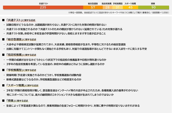 従来は対面で行われる課題提示や授業、面談という回答が多く、コロナ禍の影響が色濃く出る結果となりました。