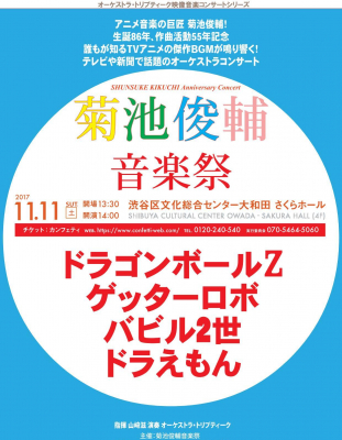 現在88歳の巨匠菊池俊輔。そのお馴染みの主題歌に加えて「ドラえもん」「ゲッターロボ」「バビル2世」「ドラゴンボールZ」などオーケストラサウンドをたっぷりと演奏。