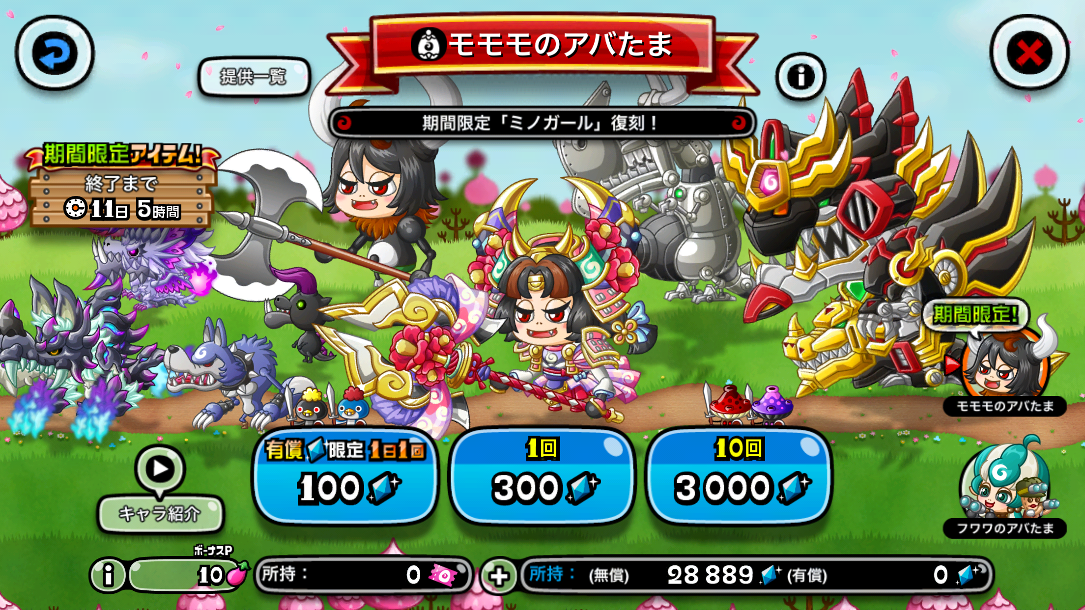 下記期間中、ゲームにログインするだけで1日1回「モモモのアバたまチケット」がもらえます。期間中最大10枚のチケットが手に入ります。