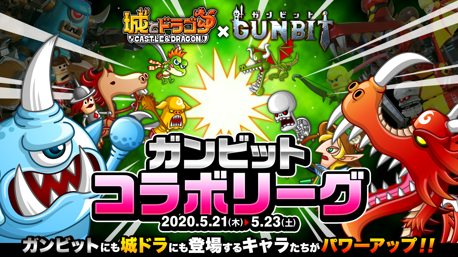 下記期間中、バトルイベント「リーグ」にて、『ガンビット』にも登場する『城ドラ』キャラたちがイベント対象となる「ガンビットコラボリーグ」が開催されます。