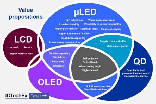 出展 : IDTechEx調査レポート :「LCD、OLED、QD、マイクロLEDディスプレイのバリュープロポジション」