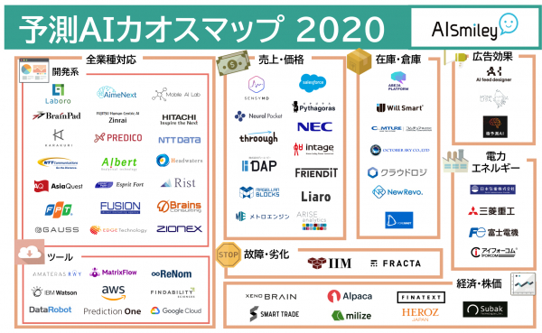 人工知能を搭載したサービスの資料請求ができるAIポータルメディア「AIsmiley」を運営するアイスマイリー(東京都渋谷区、代表取締役:板羽晃司)は、「予測AIカオスマップ2020」を2020年5月26日に提供開始しました。掲載数は合計で66サービス。