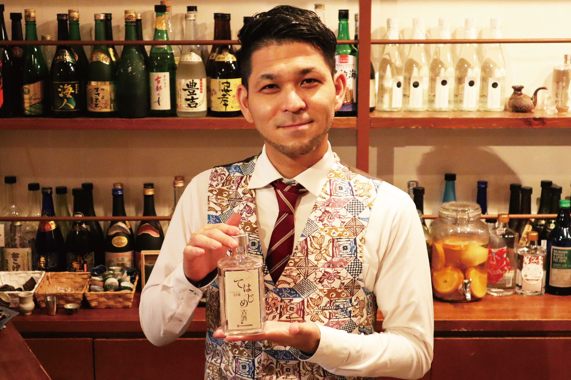 「てはじめ古酒」は、古酒としては控えめな35度にアルコール度数が抑えられていて、水割りにすると米の甘み・旨みが伸びて食事の美味しさを引き出します。また、ロックやストレートだと古酒の深い味わいをじっくりゆったり楽しめます。初めて古酒に触れる人に「古酒の味わいを正しく知ってもらうのに最適なお酒」として、とてもお勧めしやすい味わいです。