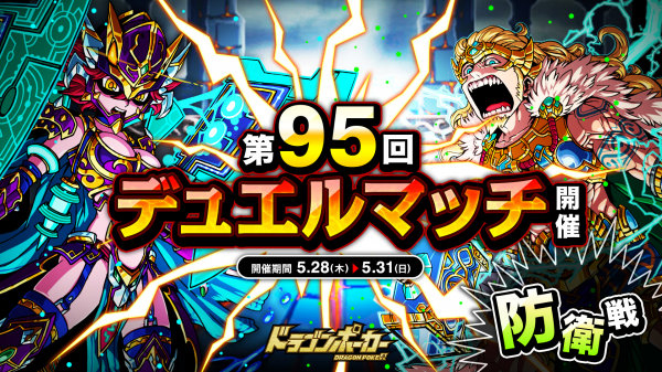 株式会社アソビズム(本社:東京都千代田区、代表取締役:大手智之)は、App Store・Google Playにて好評配信中のリアルタイム合体カードバトル『ドラゴンポーカー』で、2020年5月28日(木)より「第95回デュエルマッチ本戦」を開催いたします。