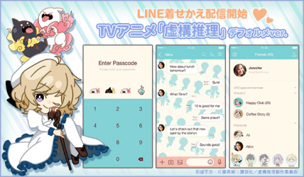 株式会社インクルーズ(東京都渋谷区、代表取締役社長 山﨑 健司)は、LINE株式会社(東京都新宿区、代表取締役社長 出澤 剛)が運営するコミュニケーションアプリ「LINE」内の着せかえショップにて、TVアニメ「虚構推理」デフォルメver.のLINE着せかえを2020年5月28日(木)に配信致しました。
