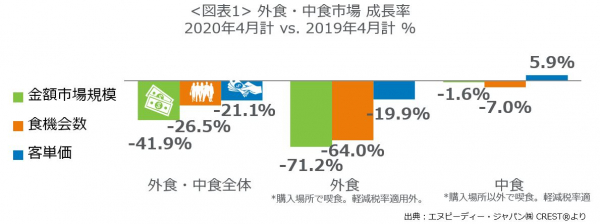 外食・中食市場情報サービス『CREST(R)*1』を提供するエヌピーディー・ジャパン株式会社(東京都港区、トーマス・リンチ代表)は、外食・中食市場2020年4月の動向分析レポートを2020年6月4日に公表します。