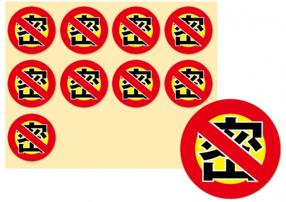 サービスは、記念品ストアーで購入された法人のお客様限定で、購入した個数分だけ、無料で密禁止シールをプレゼントするサービスとなっております。貼る作業は購入したお客様自身がする事で、無料提案が可能となりました。