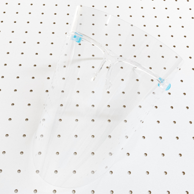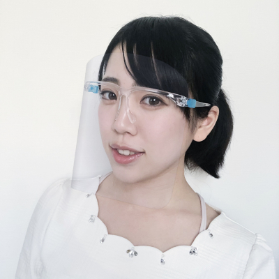 一方で、フェイスシールドの多くはバンドで頭に固定する方式を採用しており、その形状から、髪型が崩れる、頭付近が暑い、などの課題を抱えています。加えて、形状によっては光の反射が起こりやすく、顔や表情が見えづらくなるなどの問題がありました。