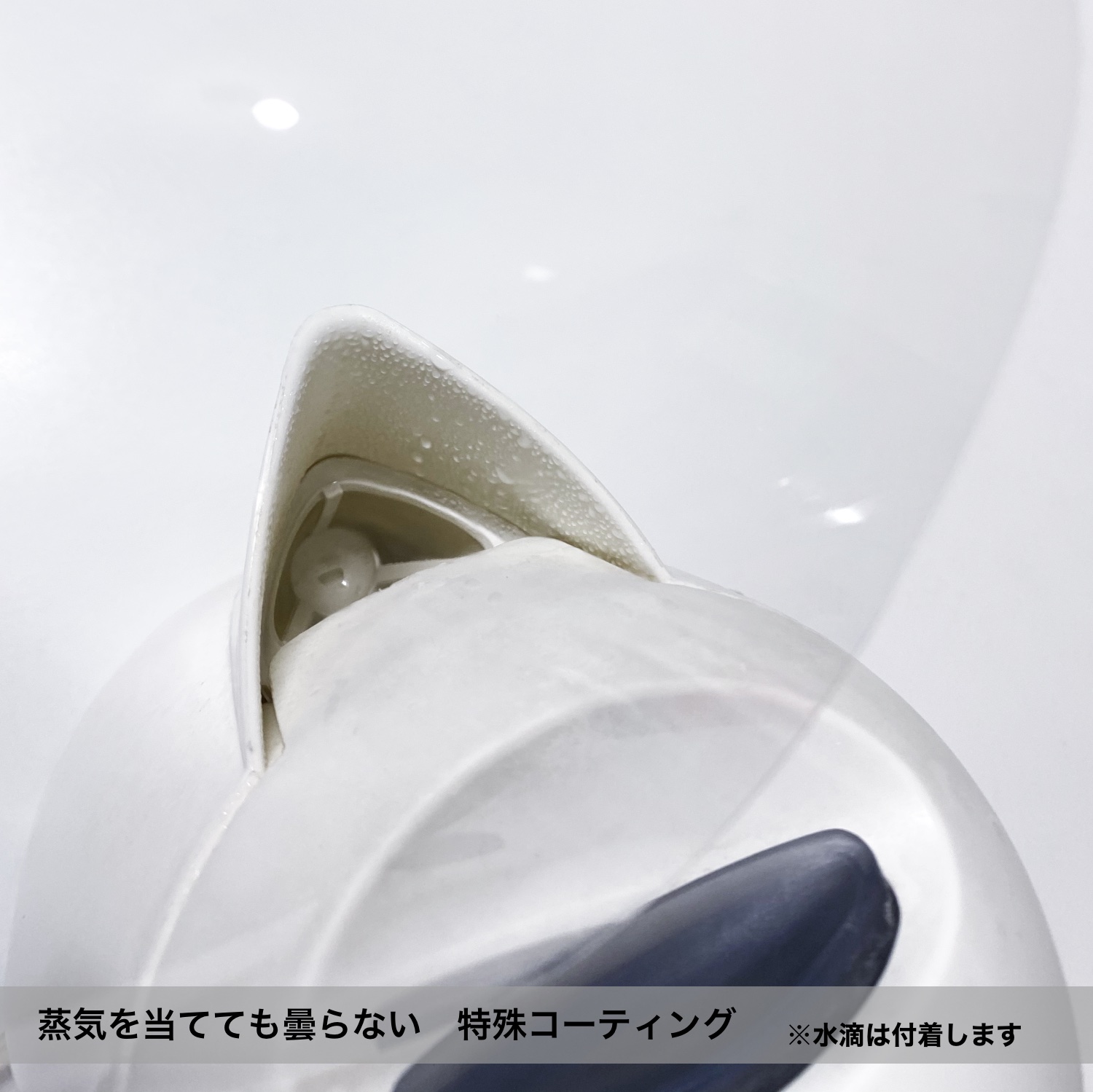 メガネをしていても問題なく着用できること、小学生のお子様から大人までどなたでも使用できるフリーサイズであること、目からシールドまでのクリアランスが十分に確保されていて圧迫感がないことなど、数多くの特徴があるほか、曇り止め加工により、シールドの透明度を高めたことで、着用者の表情が口元がはっきりと見えるのも大きなポイントです。スマートフォンの顔認証もお使いいただけます。