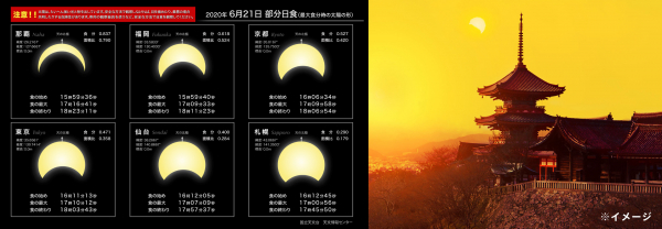 6月21日(日)、夏至の日の夕方日本全国で部分日食が起こる。