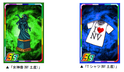 ダンジョンのボスモンスターを倒すと、まれに新たな限定子分カード「女神像(NY土産)」「Tシャツ(NY土産)」が手に入ります。限定子分カードは複数枚集めると進化ができ、子分スキルの効果が強力になります。